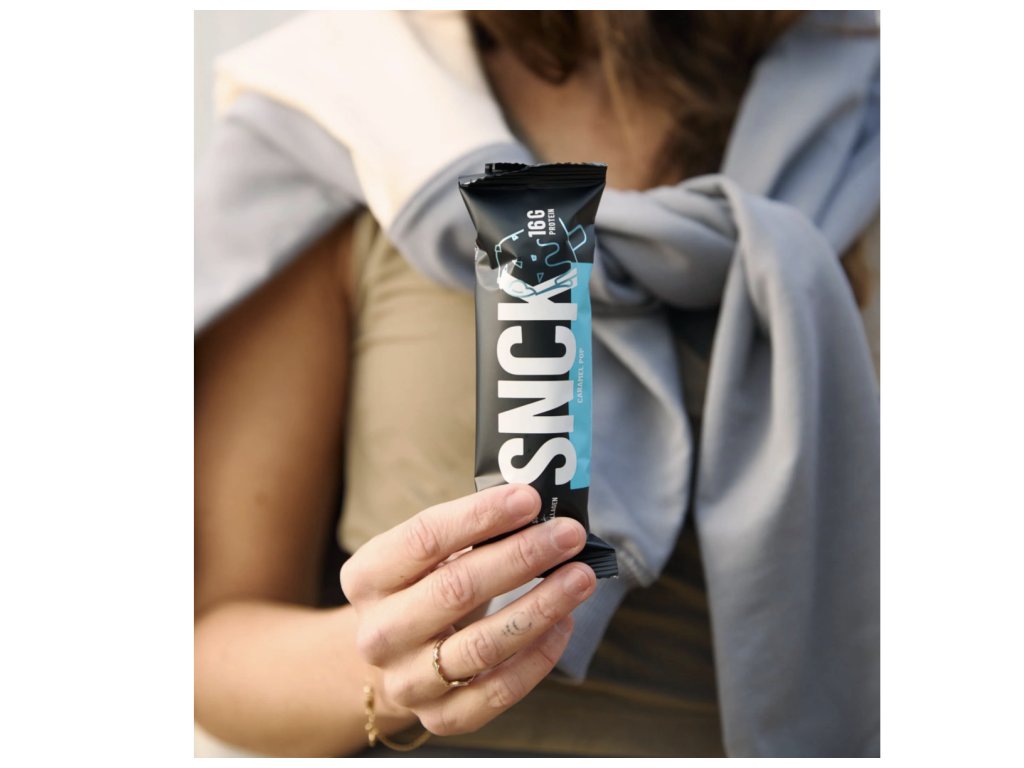 Popis produktu: SNCK (čti: snack) je lahodná proteinová tyčinka s jemnou karamelovou příchutí, mléčnou čokoládou, kousky lískových ořechů a obalená v křupavé čokoládě. Obsahuje kolagen a vysoký obsah bílkovin. Bez přidaného cukru, se sladidly. Textura je měkká, vláčná, krémová. Sladkost vyvážená. Chuť plná a přirozená – bez chemického dozvuku, který znáte z běžných proteinových tyčinek